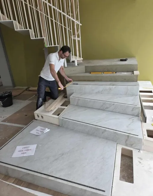 Å være ute i god tid er ofte lurt i et steinprosjekt, da ikke alltid den steinen du vil ha «ligger på hylla». Den kan faktisk være fast fjell i tidspunktet du forespør. I hvert fall hvis det er snakk om store prosjekter eller spesielle steintyper. Men du kan være trygg på at finnes steinen, så skal vi levere den. Du kan velge i en verden av stein og vi skal hjelpe deg på veien slik at du får den steinen som passer ditt prosjekt, både med tanke på egenskaper og utseende. Uttegning av interiør, benkeplater, gulv, trapper eller fasader i naturstein eller terrazzo i samarbeid med arkitekt og entreprenør er avgjørende for et godt prosjekt. Våre ingeniører har god erfaring innen CAD og IFC, slik at steinen blir produsert på millimeteren. Formater, former og mønster tegnes på forhånd slik at du kan «se resultatet» før produksjon, Innfesting med tilpassede forankringer sørger for at ditt prosjekt blir sikker og nøyaktig. Vi kan hjelpe deg med prosjektering av bakenforliggende vegger slik at spikerslaget passer. Det finnes ikke problemer, bare løsninger.