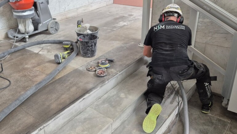 Gammel og slitt stein eller terrazzo kan slipes for å få frem en jamnere, blankere og lettere vedlikeholdt overflate. Reparasjoner utføres med samme stein/resept som originalt slik at utseende blir tilnærmet identisk den eksisterende. En god impregnering er viktig for å bevare materialet over tid, derfor leverer vi alltid en tilpasset FDV for ditt prosjekt. Utførelsen gjøres av erfarne håndverkere med fagkunnskapen helt ut i hendene. Du får tilpasset utførelsen til ditt prosjekt. En liten stein eller skade kan byttes/repareres på lik linje som et stort gulv, trapp eller en fasade. Ornamentale og monumentale steiner til f.eks. kirker fremskaffer vi etter alle kunstens regler.