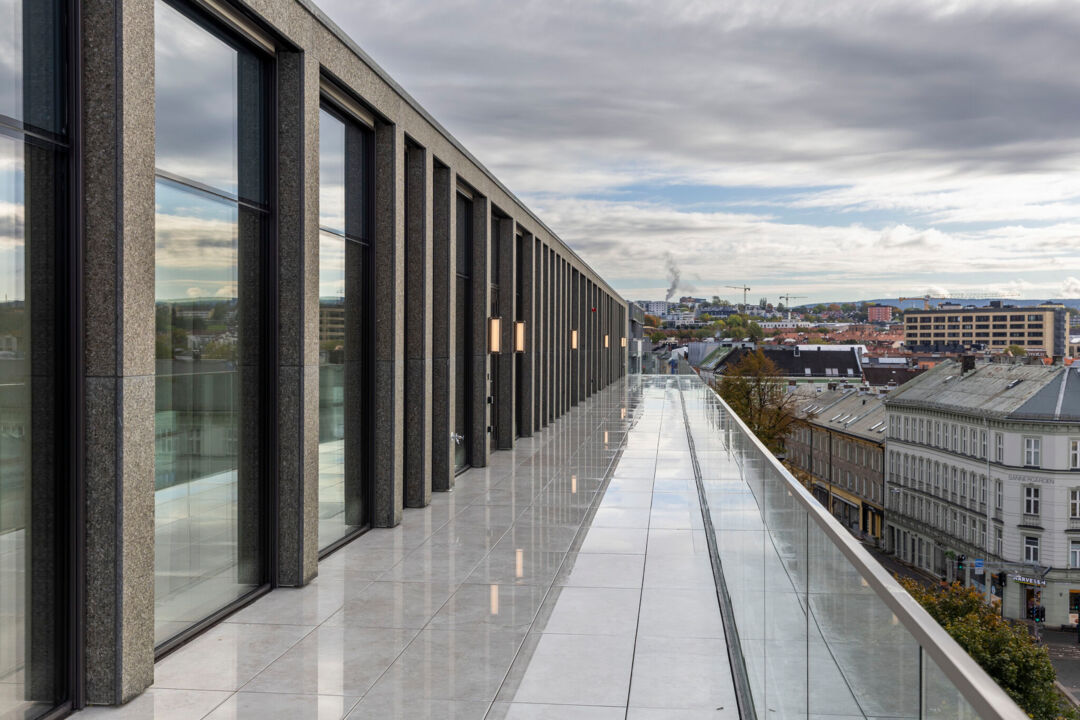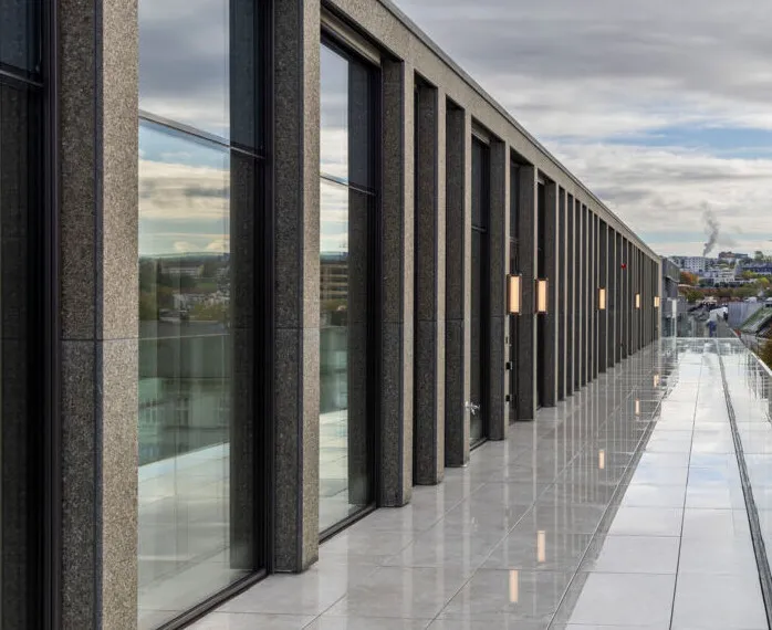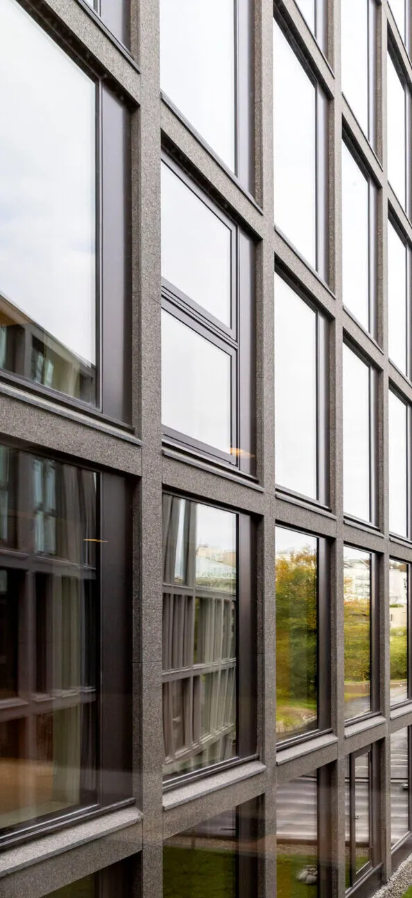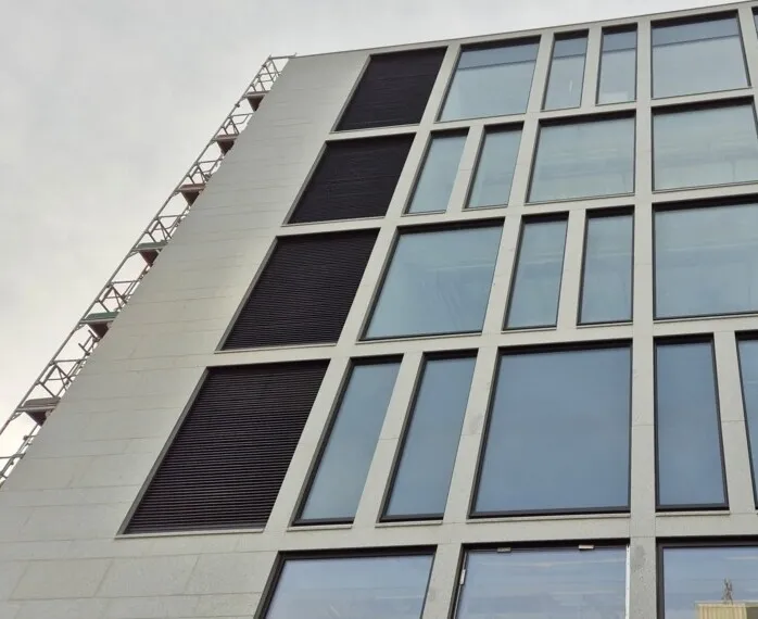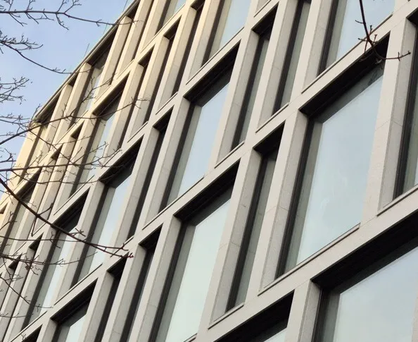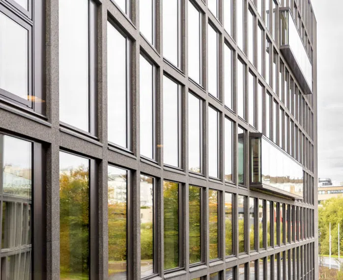 Mekanisk luftet steinfasade med moderne forankringssystemer som ivaretar god bæring av natursteinen.
