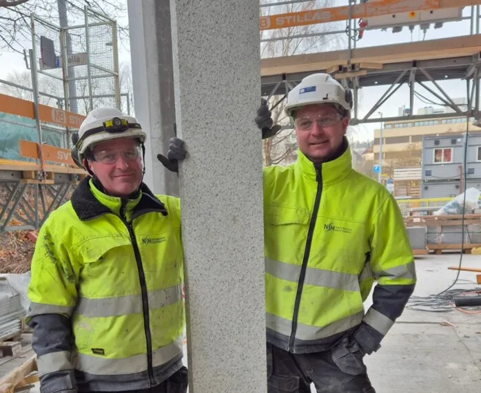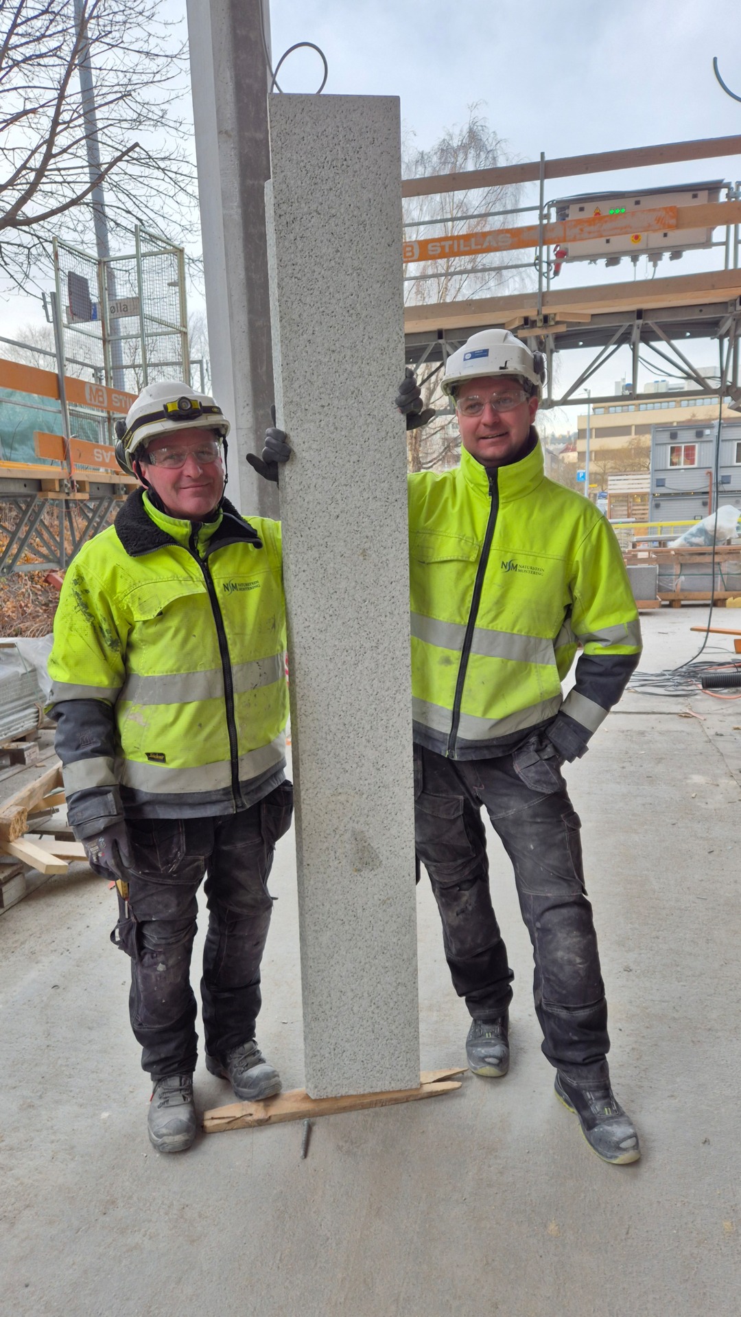 Samtidig som nøyaktig posisjonering iht. til koter og akser er utført har fasadene fått søyler og overdekninger med spesiallagede forankringer.