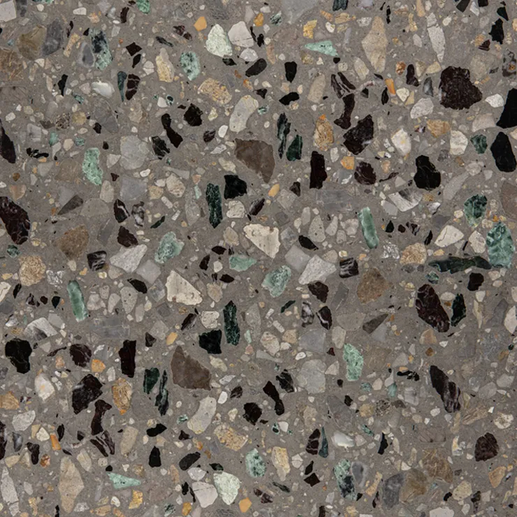 Terrazzo er et helstøpt produkt som har gjennomgående farge. Derfor kan produktet lett formes og slipes til ønsket form og utseende uten at uttrykket forandres.