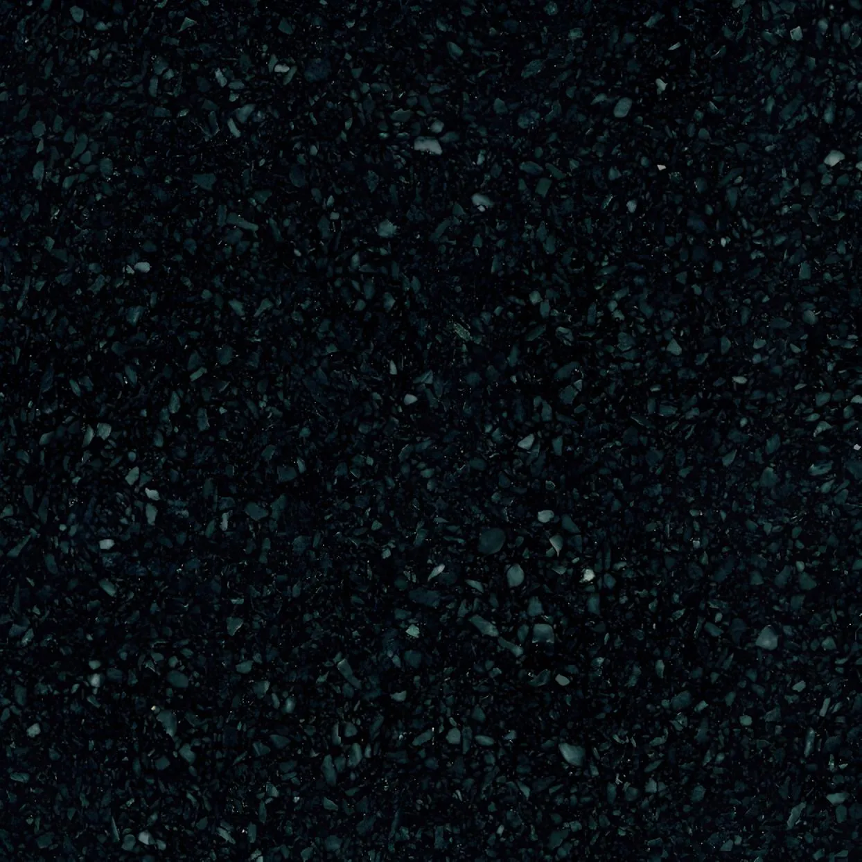Terrazzo med sorte marmorsteiner bundet i dempet sort resin